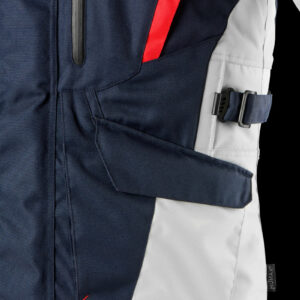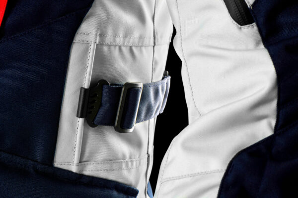 Waist and sleeve adjuster tabs.